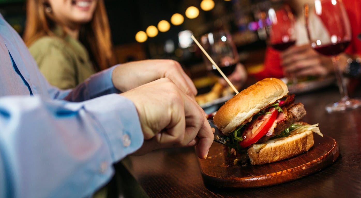 2 pljeskavice (2x 100 g), cheddar sir, zelena salata, pomidor, prženi luk, umak -